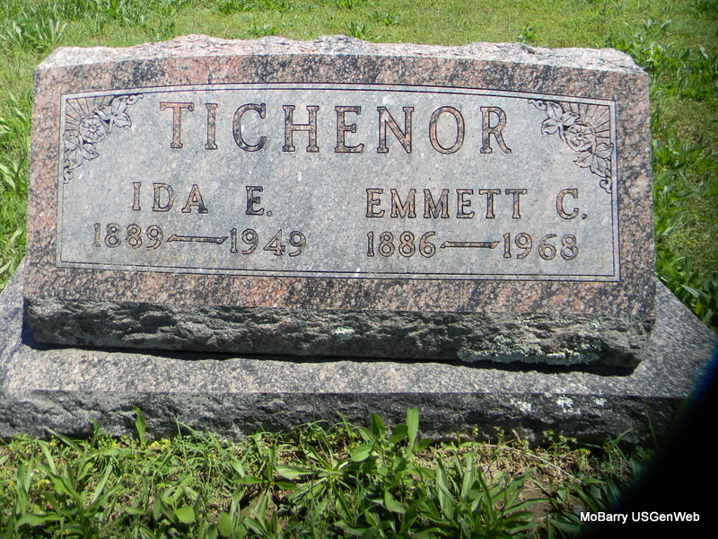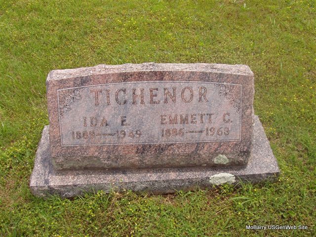 SSW: Emmett C. - Research Note: Her death certificate names Moses Bixler as her father. Her mother is given as Sarah Ellen Hackerthorn. Her husband was given as E. C. Tichenor. Daughter's obit (Betty Ruth Harader) names her as Ida Emory. - Ida Bixler married Emmett Tichenor on June 2, 1907 in Newton Co., MO. - Another Photo - Another Photo | Death Certificate MO Marriage Records Donna Cooper Photos Ralph and Betty Lamberson Photo Bill Utter |