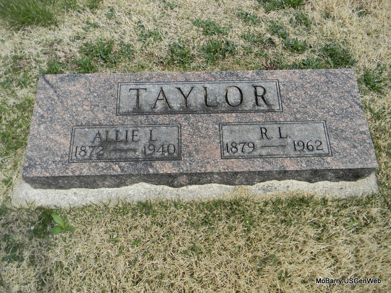 | TAYLOR, Alice Lillian "Allie" (JONES) | Aug. 14, 1872 Stella, Newton Co., MO |