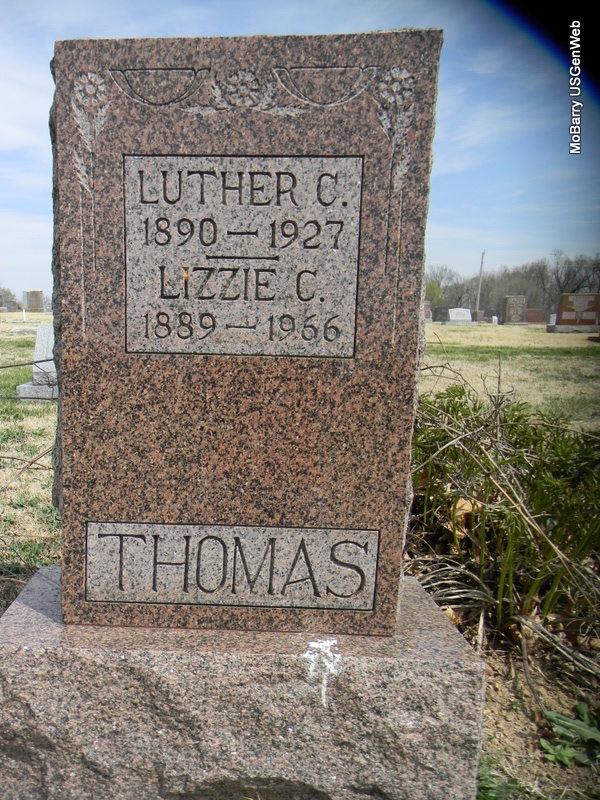 SSW: Luther C. - Research Note: Daughter of Herman Julius William Chancel, buried at Rocky Comfort Cemetery, and Bertha Augusta Wilhelmina Janke. Calvin Thomas of Carthage, MO was the informant on the death certificate. Luther Calvin married Lizzie Chancel on July 21, 1917 in McDonald Co., MO. | Death Certificate MO Marriage Records Census Phyllis Long Photo Bill Utter |