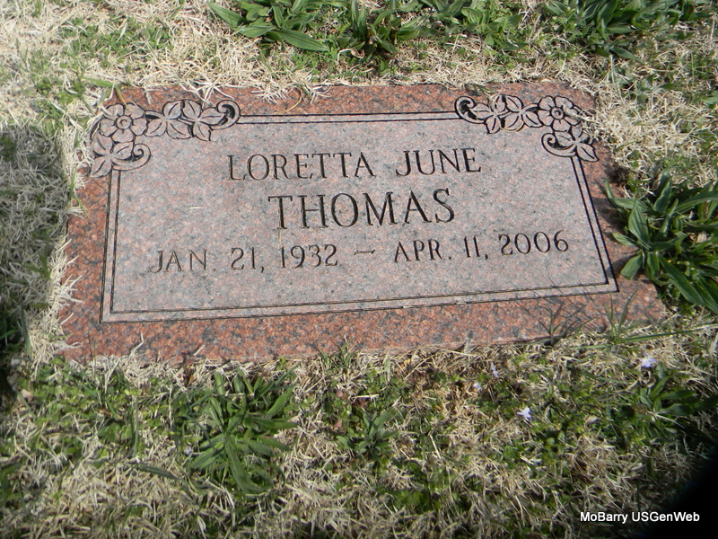 | THOMAS, Loretta June | Jan. 21, 1932 | Apr. 11, 2006 | Research Note: Wife of Cecil Ellis Thomas. | Note Phyllis Long Photo Bill Utter |