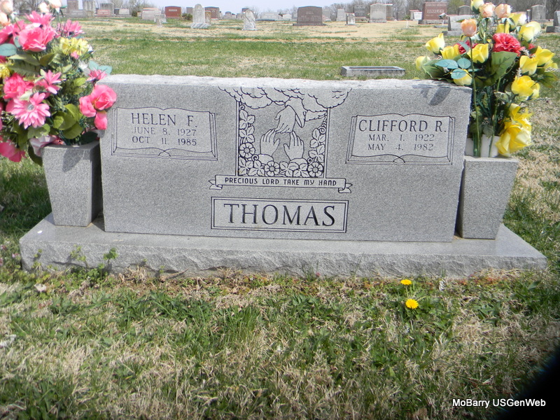 | THOMAS, Clifford R. | Mar. 1, 1922 | May 4, 1982 | SSW: Helen F. - Research Note: Son of Luther Calvin Thomas and Lizzie Chancel. | Census Phyllis Long Photo Bill Utter |
