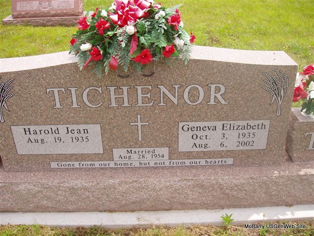 | TICHENOR, Harold Jean | Aug. 19, 1935 | No Date | SSW: Geneva Elizabeth - Inscription: "Married Aug. 28, 1954" - Back of Stone - Inscription: "Son of Melvin and Opal Tichenor" - Another Photo - Back of Stone | Photos Ralph and Betty Lamberson Photos Bill Utter |
