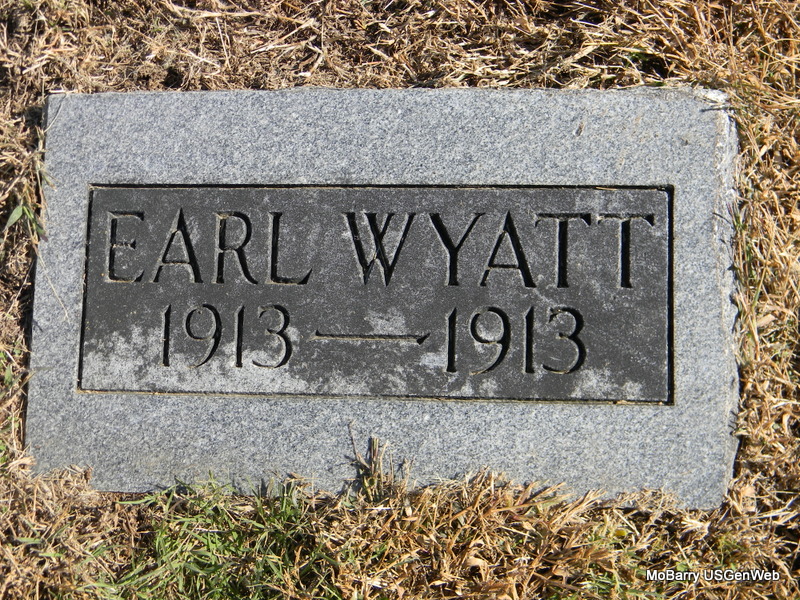 | WYATT, Earl | 1913 | 1913 | Research Note: Buried next to Otis Wyatt with matching stone. Probably sons of Andrew and Nellie. | Note Phyllis Long Photo Bill Utter |