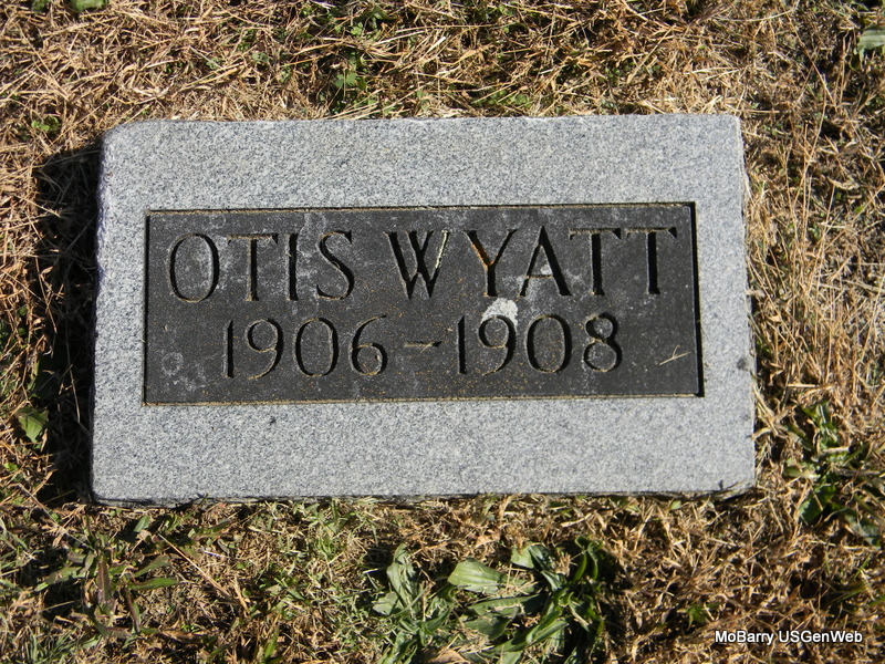 | WYATT, Otis | 1906 | 1908 | Research Note: Buried next to Earl Wyatt with matching stone. Probably sons of Andrew and Nellie. | Note Phyllis Long Photo Bill Utter |