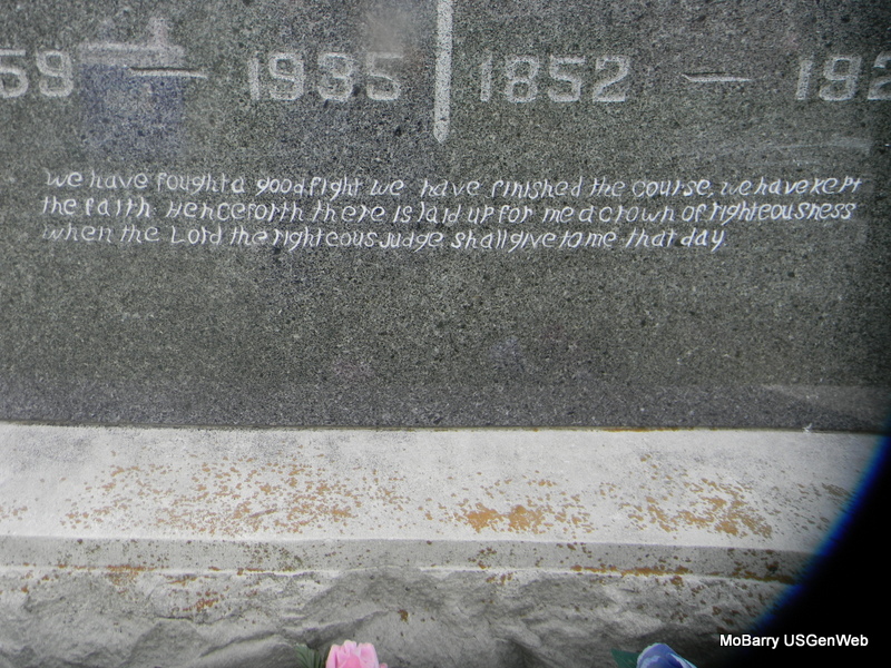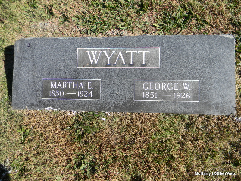 | WYATT, George Washington | 1851 | 1926 | SSW: Martha E. - Research Note: Son of Davis J. Wyatt and Elizabeth Adams. Husband of Martha E. Andridge/Arbridge/ or Harbridge (see Martha). - Cassville Republican, Nov. 27, 1919 - Rocky Comfort: H. P. Lamberson and G. W. Wyatt have the new light plant building completed. | Census Online Newspapers Phyllis Long Photo Bill Utter |