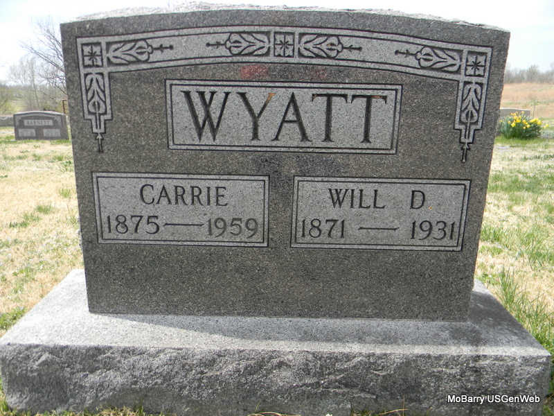 | WYATT, Carrie L. (DONNELL) | May 29, 1875 Powell, McDonald Co., MO |