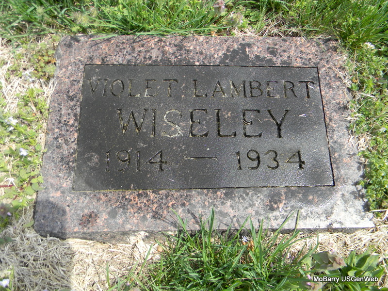 | WISELEY, Violet (LAMBERT) | 1914 | 1934 | Research Note: Daughter of Forrest Paul Lambert and Mary C. McKinley, divorced. Violet is buried next to her mother, Mary. Violet Lambert, age 19, married Edward Wiseley, age 21, on Sept. 9, 1933 in Neosho, Newton Co., MO. | Census MO Marriage Records Phyllis Long Photo Bill Utter |