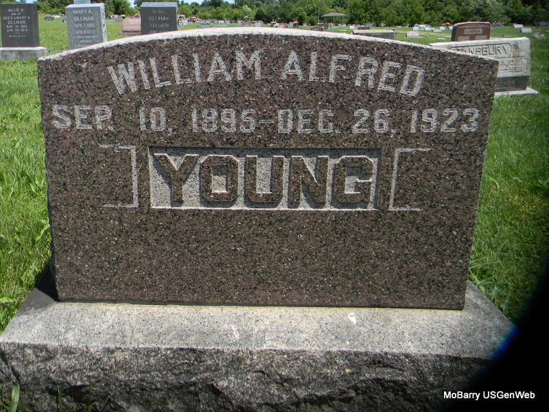 Research Note: He was a minister. Son of William A. Young and Sarah Behhe?. Lela was his wife and she was the informant on the death certificate. Lela was the daughter of James C. Long and Mellah J. Payne, both buried at Rocky Comfort Cemetery. She second married Henry Ray Northrop and is buried at Rocky Comfort Cemetery with her second husband under Northrop. - Military Stone - Inscription: "MISSOURI PHM1 USNR WW II" | Death Certificate Census Phyllis Long Photos Bill Utter |