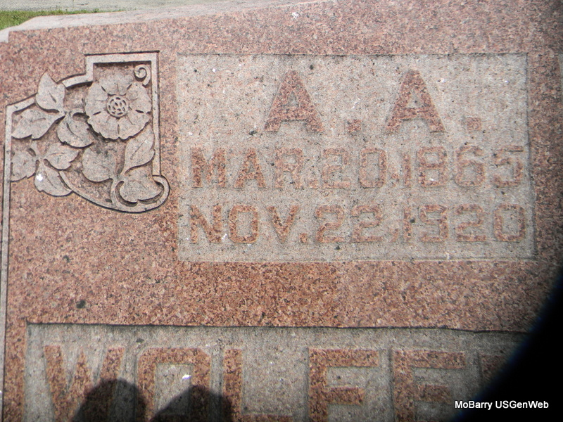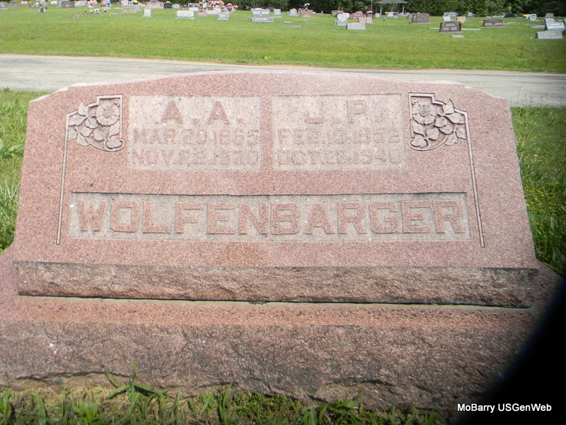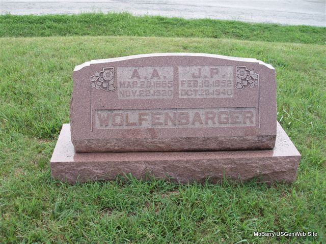 SSW: James Peter - Research Note: She was a daughter of Josiah Adam and Sarah Louisa (Reynolds) Crawford. - Wheaton Journal, November 26, 1920 - Almedia Anne Wolfenbarger, wife of J.P. Wolfenbarger, of this city died Monday morning, Nov. 22, 1920 after an illness of six weeks from inflammatory rheumatism. Almedia Anne Crawford was born March 20, 1865 in Dallas county, Mo. When a young girl, she with her parents moved to McDonald county and was married to J. P. Wolfenbarger March 2, 1879. To this union was born twelve children all of whom are living. They are: James C. of Lebanon, Oregon, Charles W. of LaJunta, Colo., Millard M. of Sedan, N. M., Bryan of Wheaton, Dewey F. of Greybull, Wyo., Willie Josephine Hodge of Kansas City, Mo., Kate Bowers of near Bethpage, Inez Houser of Southwest City, Elsa Hughes of near Stella and Twilla and Opal of Wheaton. Mr. and Mrs. Wolfenbarger moved to Wheaton in Jan. 1917. Previous to that time they had lived in McDonald and Newton counties and were well and favorably known over this section. Funeral services were conducted at the M. E. Church Tuesday at one o'clock by Rev. J. B. Redd of Rocky Comfort and internment made in the Rocky Comfort cemetery. Not only has the family suffered the loss of one they held dear, but the community as a whole will miss one of it?s best women. The Journal joins a large number of friends in extending sincere sympathy to the bereaved ones. - Another Photo - Another Photo | Note Photo Ralph and Betty Lamberson Online Obit Phyllis Long Photos Bill Utter |