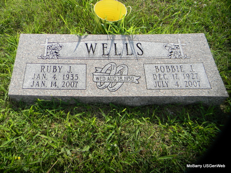 SSW: Bobbie J. - Inscription: "Wed Aug. 18, 1950" - Research Note: She was a daughter of Archie and Julie Rebecca (McMillen) Boyd. On Aug. 18, 1950, she was united in marriage to Bobbie Wells. She was preceded in death by her parents; two brothers, Estes Archie Boyd and Elzie Arthur Boyd; and one daughter Vickie Ann Mills. | Cassville Democrat Phyllis Long Photo Bill Utter |