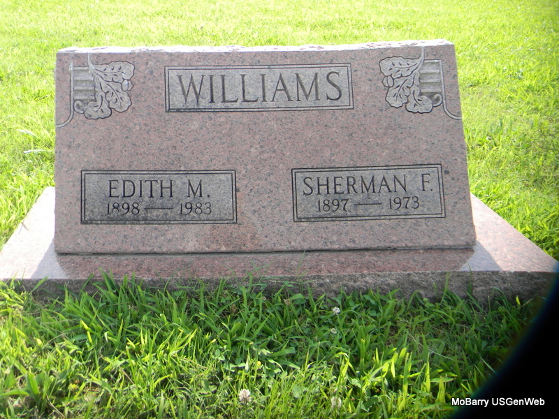 | WILLIAMS, Sherman F. | 1897 | 1973 | SSW: Edith M. - Research Note: Son of William Clay Williams and Julia O. Campbell. | Census Phyllis Long Photo Bill Utter |