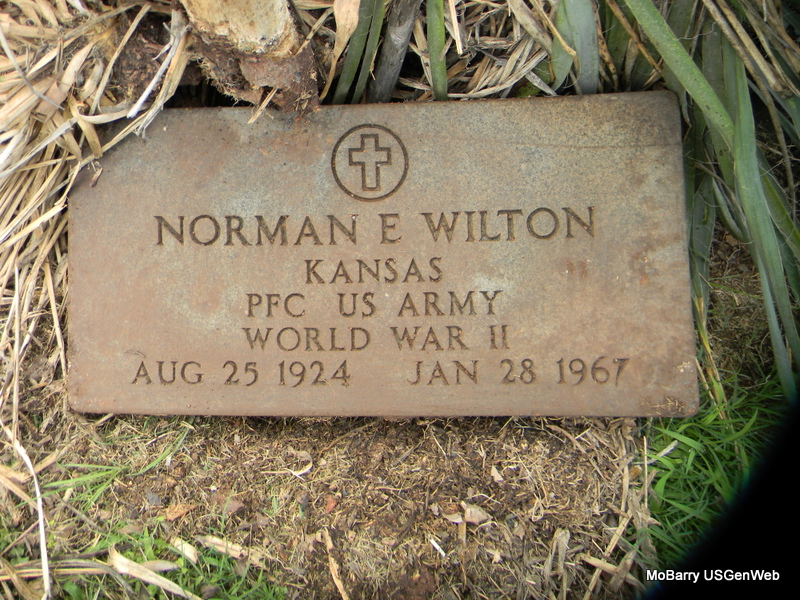 Inscription: "KANSAS PFC US ARMY WW II" - Research Note: Son of Frank E. Wilton and Lydia M. Groff. He may have married Roberta Lee (Hayslip) Patterson. | Census Phyllis Long Photo Bill Utter |