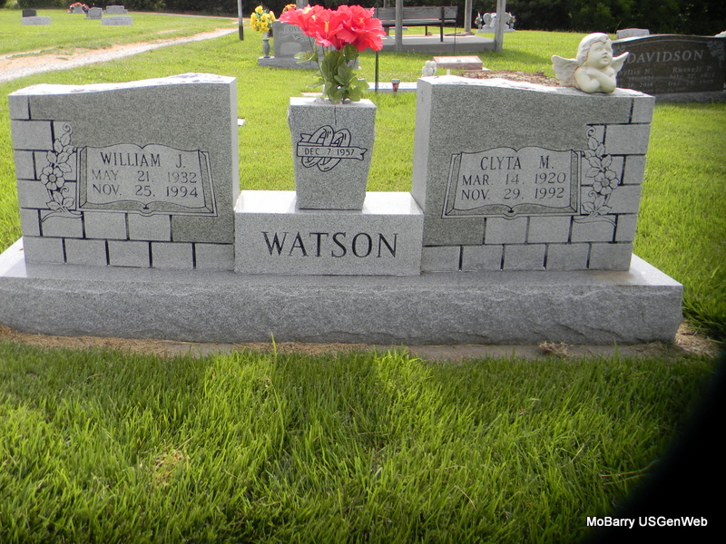 | WATSON, Clyta M. | Mar. 14, 1920 | Nov. 29, 1992 | SSW: William J. - Inscription: "Married Dec. 7, 1957" | Photo Bill Utter |