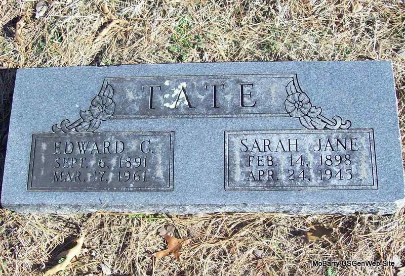 SSW: Sarah Jane - Research Note: Edward C. Tate, age 22, married Sarah Jane Pope, age 15, on Oct. 21, 1913 in Cassville, Barry Co., MO. Son of Gersham Rufus and Dora Vesta (Beaver) Tate. | Photo Wilma Fields Note Donna Cooper SS Claims Index MO Marriage Records Phyllis Long |