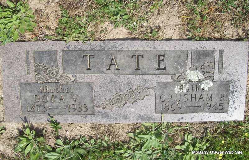 SSW: Dora V. - Inscription: "Father" - Research Note: He was a son of Edward and Marilda (Shipley) Tate and married Dora Vesta Beaver. The Tate family came from Greene Co., TN, to Sullivan County and from there to Roller's Ridge. Most of them lived near the MO and AR line - on one side or the other. | Photo Wilma Fields Note Donna Cooper |