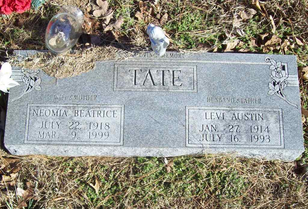SSW: Neomia Beatrice - Inscription: "Husband and Father" - Research Note: Austin was a son of Edward C. and Sarah J. (Pope) Tate. Edward and Sarah married in Barry County on 21 Oct 1913. They lived near Gateway or Clantonville, in Benton County, near the Barry County line most of their lives. Sarah was age 15 when they married. | Photo Wilma Fields Note Donna Cooper |