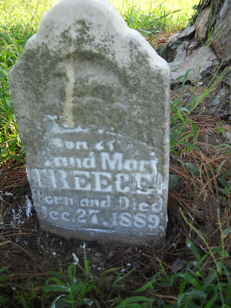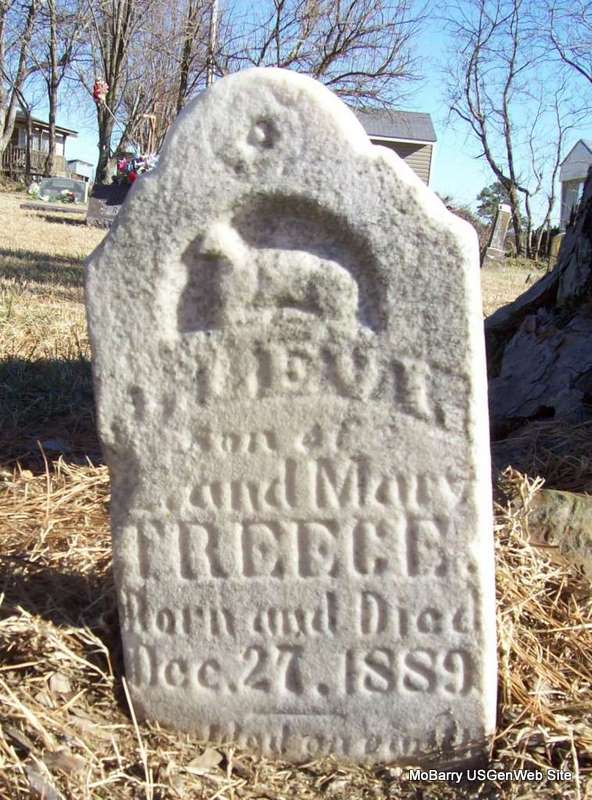 | TREECE, Levi | Dec. 27, 1889 | Dec. 27, 1889 | Inscription: "Son of L. and Mary Treece" - Research Note: His parents were Lafayette C. and Mary Dorkus (Sammons) Treece. - Photo Retake | Photo Wilma Fields Note Donna Cooper Retake Photo Donna Cooper Ted Roller |
