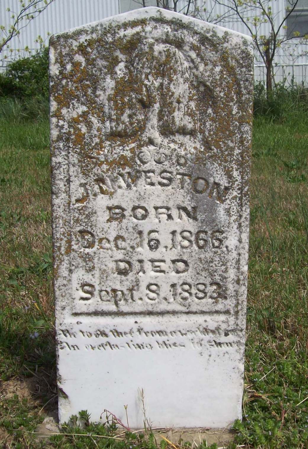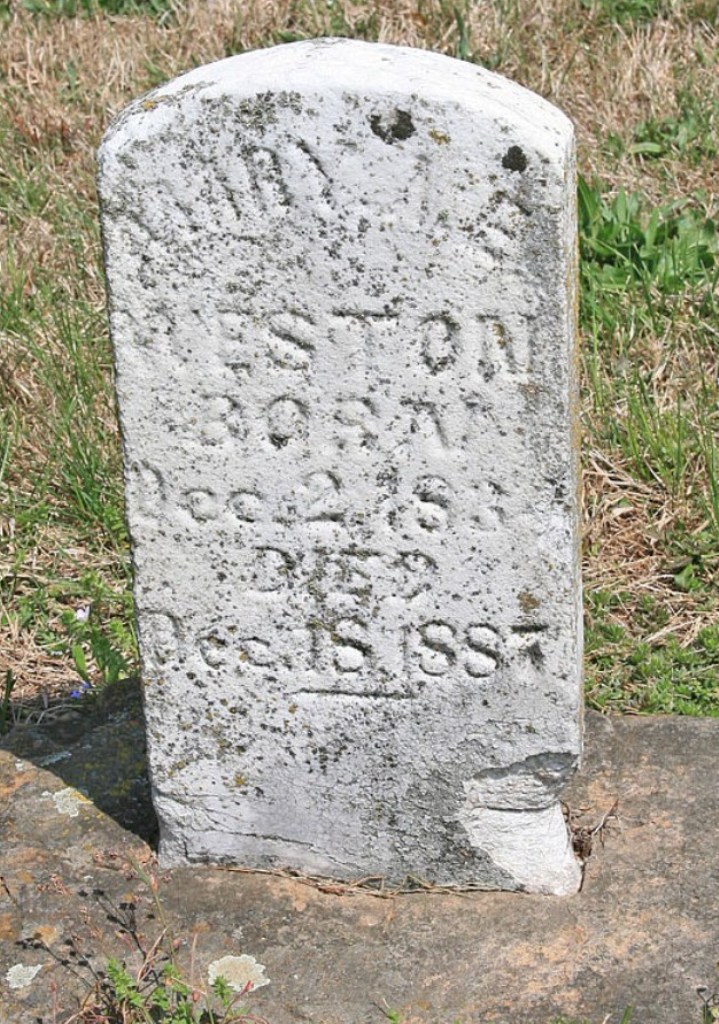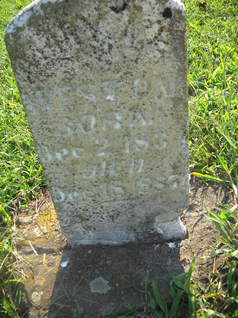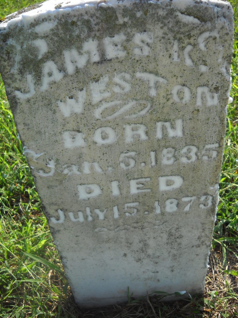 | WESTON, Isaac Newton | July 23, 1875 | Oct. 12, 1875 | Inscription: "Isaac N. - Son of S. S. and Polly" - Research Note: Part of this stone is missing. Son of Simon Sephus Weston and Mary Ann Herd. - Another Photo - Retake Photo | Photo Wilma Fields Note Donna Cooper Retake Photo Donna Cooper Ted Roller |