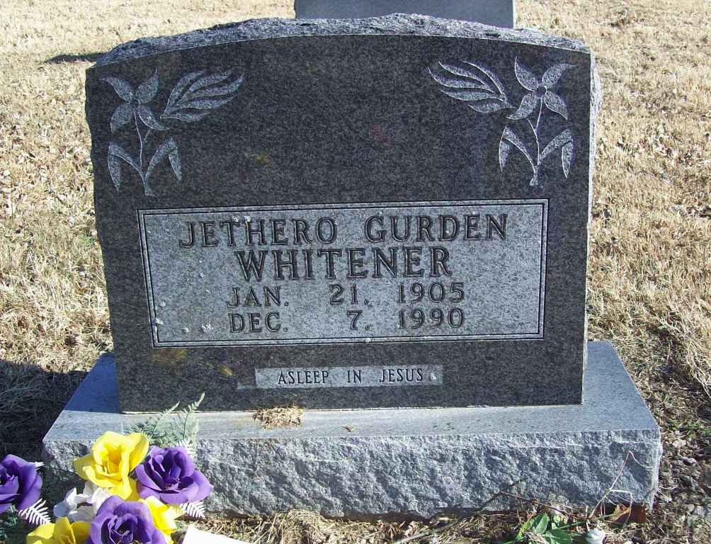 | WHITENER, Jethero Gurden | Jan. 21, 1905 | Dec. 7, 1990 | Inscription: "Asleep in Jesus" - Research Note: Son of Dares Arthur Whitener and Sarah C. Morris. His wife was Zelpha Ann Wyrick. | Photo Wilma Fields Census Phyllis Long |