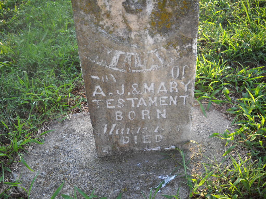 Sept ? | Inscription: "Son of A. J. and Mary Testament" - Research Note: The bottom of this stone is in concrete. This was first transcribed with a birth date of Mar. 12th, the retake photo looks like it reads March 13th. Milan was age 6 in 1880 and living in Lee Co., VA, with his parents Andrew and Mary. - Photo Retake | Photo Wilma Fields Note Donna Cooper Retake Photo Donna Cooper Ted Roller |