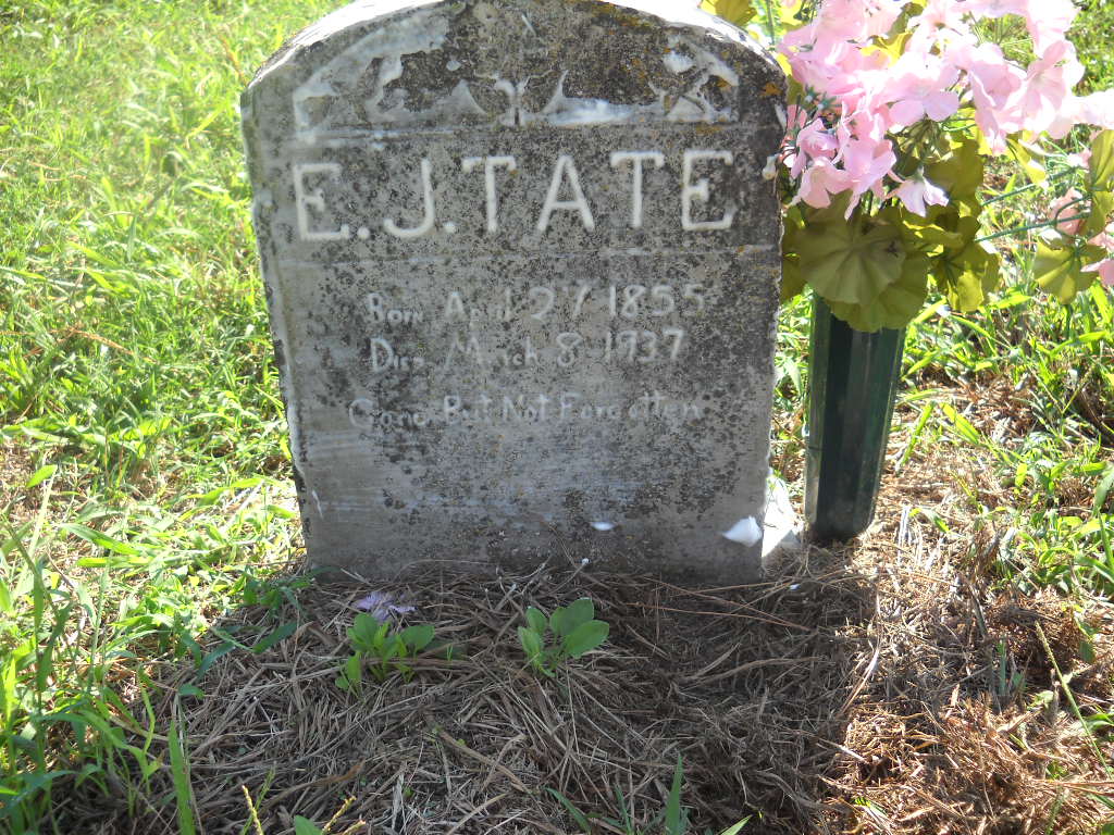 Inscription: "Gone but not forgotten" - Research Note: His death certificate has his name as Elbert Jackson Tate and his stone has it as E. J. Tate - and has his birth date year as 1858 and not Apr. 27, 1855 as the stone reads. His mother Marilda Shipley and father, E. J. married in Sullivan Co., MO, July 27, 1856, so the 1855 date might not be correct. He was a farmer and a son of Edward Tate and Rilda Shipley. Pneumonia was the cause of death and Julia Tate was listed as his wife and as the informant. - Photo Retake | Photo Obituary Wilma Fields Note Death Certificate Donna Cooper Retake Photo Donna Cooper Ted Roller |