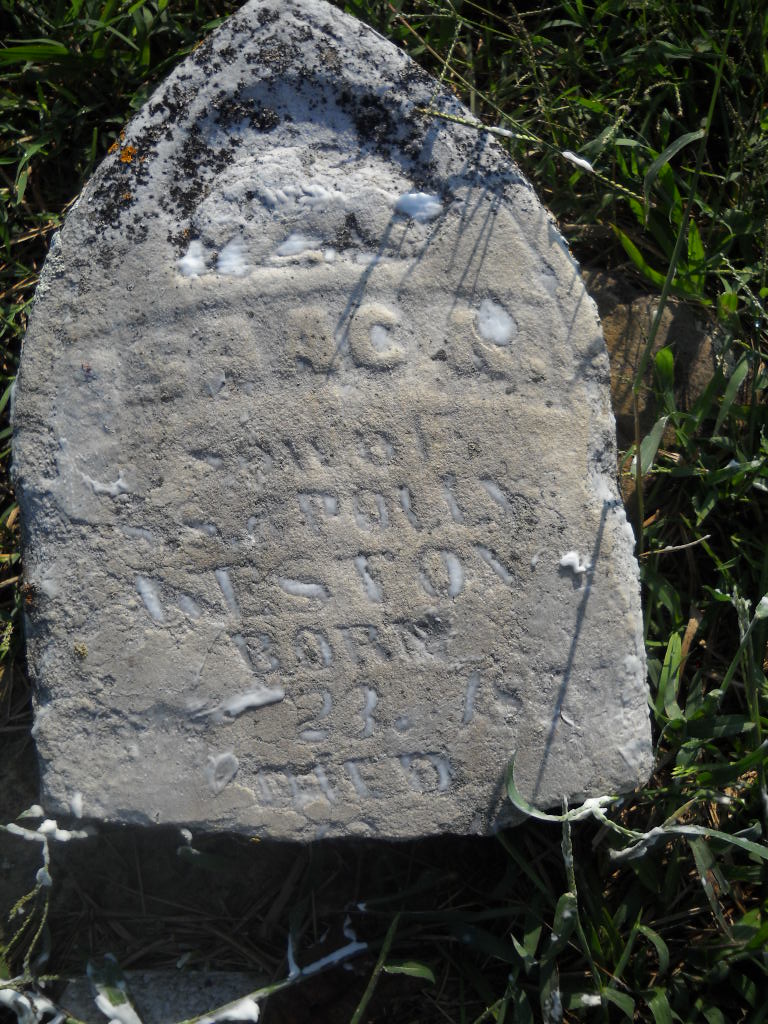 | WILSON, ____ | No Date | No Date | Research Note: This stone is broken in several pieces. It has no information on it at all - just the word "Wilson". | Photo Wilma Fields Note Donna Cooper |