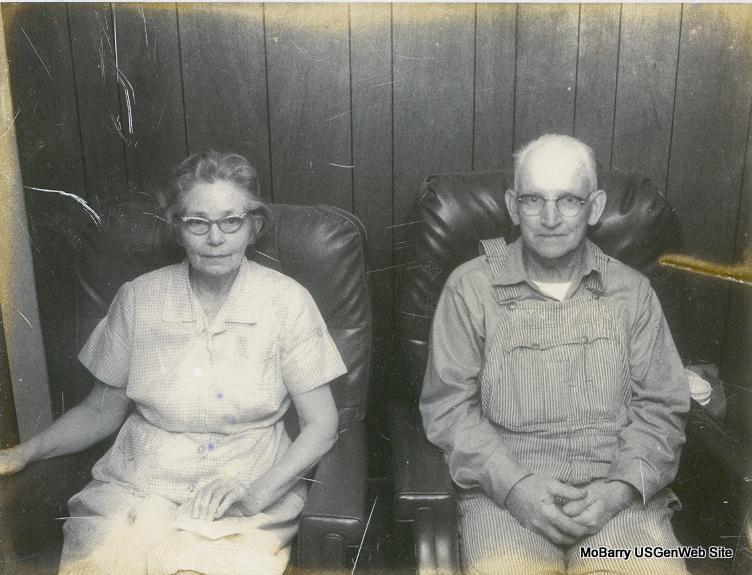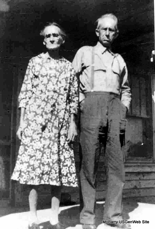 SSW: Mary Ann - Research Note: Son of Jefferson Joshua and Louisa May (Baker) Boman. Husband of Mary Ann (Stephens) Boman, married Apr. 4, 1878 in McDonald Co., MO. Age 88 and a farmer. Cause of Death was flu and complications. - Obit: Jeff Davis Boman, son of Joshua and Louisa Baker Boman, was born near Berryville, Ark., on July 4, 1861. When he was about sixteen, he came with his family to McDonald County, Mo., and spent the rest of his life in that state, living in McDonald, Barry, and Newton counties. On April 4, 1878, he was married to Miss Mary Ann Stephens, who preceded him in death, September 12, 1948. Of their seven children, one died in infancy, the remaining six survive. They are; Mrs. Nancy Rose, Washburn; J. W.. Boman of Seneca; Mrs. Lula Swartz, Eldorado Springs; Mrs. Belle Clontz of Ogden, Utah; Mrs. Alma Clontz of Wendover, Utah; and H. R. Boman of Southwest City. There are 30 grandchildren, 106 great grandchildren, 51 great great grandchildren, and one great great great grandchild. Mr. Boman was converted and joined the Baptist Church when he was about 19 and was a deacon of that church for 49 years. He came to the Racine and Seneca communities about 20 years ago. He died at the home of his son, J. W. Boman, in Seneca at 3 p.m. on May 20, 1950, having attained the age of 88 years, 10 months and 16 days. He was a devoted husband and father throughout his long membership in his church, kept firm in his belief and God's laws were his laws. Funeral services were held at Seneca Tuesday morning. Another service was held at Prairie Hill Church, Southwest of Washburn, on Tuesday afternoon, May 23, by Rev. Chas. VanZandt, assisted by J. M. Campbell. Burial in the Roller Cemetery, under direction of the Biddlecome Funeral Service of Seneca. Photo of Jeff and Mary | Headstone Donna Cooper Headstone Delta Newby Death Certificate Family Records Online Obit Phyllis Long |