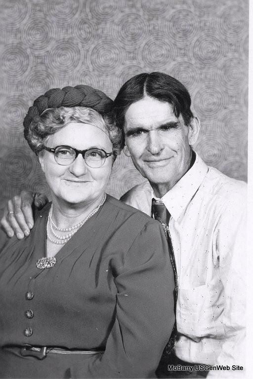 SSW: Mary E. Dalton -Research Note: He was a son of Elias P. and Mary E. (Gregg) Dalton. Wife, Mary E. Rose. Cause of death Coronary. - August 21, 1909, Cassville Democrat - Sheriff Newman went to Ash township, Wednesday and arrested Bob Dalton on a charge of felonious assault. He was engaged in the trouble at the camp meeting on Measles Prairie with the Clontz boys. He was cut up some. He gave bond for his appearance in Squire McCary's court for preliminary examination, Aug. 24. - Arrested for Felonious Assault: Sheriff Newman was called to Ash township about midnight Sunday night and arrested Bud and Sidney Clontz, charging them with feloniously assaulting a young man named Dalton, at a camp meeting on Measles Prairie. The Clontz boys used a knife on Dalton and Dalton had a pair of Knucks that he used on the Clontz's. Dalton was cut in five places, on head shoulder and side, but not serious. Sidney Clontz's head was badly bruised up with the knucks. Sheriff Newman took the Clontz boys to Washburn before Squire McCary who held them in the sum of $200 each. Their examination was set for Aug. 24, at Washburn. - Photo of Bob and Mary | Headstone Donna Cooper Death Certificate Online Newspapers Phyllis Long |