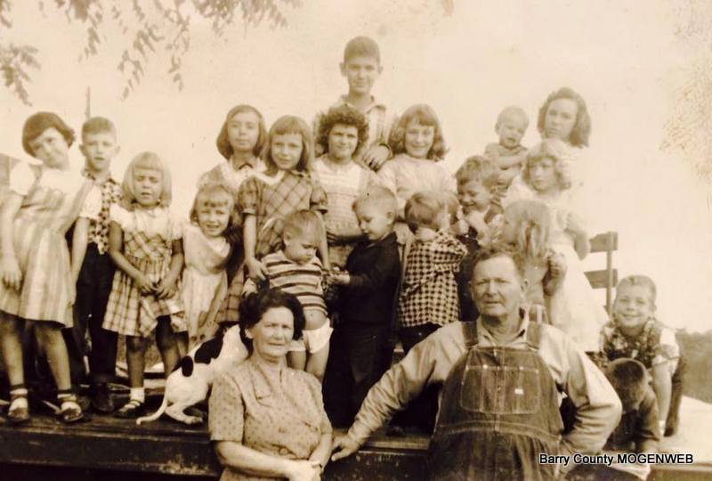 In the front are Tena "Teenie" and Elree Hilburn First row from left. All Hilburn except for Allen Sparks. Diane, Randy, Vi, Sandy, Joyce holding Steve, Mike, turned around Roger, Carla, looking at book Lynn, Allen Sparks. Second row starting behind Sandy, Joyce, Lana, Janice, Billie (fists up), Connie. Very back row: Larry "Dave" and Sue holding Wendy (baby). Roger Hilburn said, Lynn, Lana (Turner) and Diane are (were) (Diane died of Breast cancer) my siblings you probably know some or all of them. Submitted in July 2015 by Roger Hilburn, Facebook, Barry Co., MO, Places and Things Remembered |
