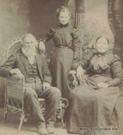 The back of this photo reads: "Elijah, Myrtle and Mary Magdalene Utter" Hoping someone can authenticate that. If its true, this was Elijah Burton Utter and second wife, Mary Magdalene Utter nee Earlywine. UPDATE - According to an email received on March 31, 2004 from Charles Beam, grandson of Leander Scott Utter, "The photo of Elijah, Myrtle and Mary Earlywine is correct. Myrtle is the daughter of Leander Scott Utter son of Elijah. Myrtle is child of Leander's 1st wife Mary Pierce." Submitted in 1999 by Cheryl |