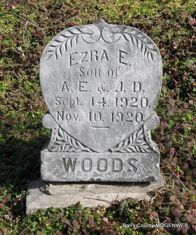 | WOODS, Ezra E. | Sept. 14, 1920 | Nov. 10, 1920 | Inscription: "Son of A. E. and J. D." | Headstone Lanny and Mary Homesley Photo Jack Fly Phyllis Long |