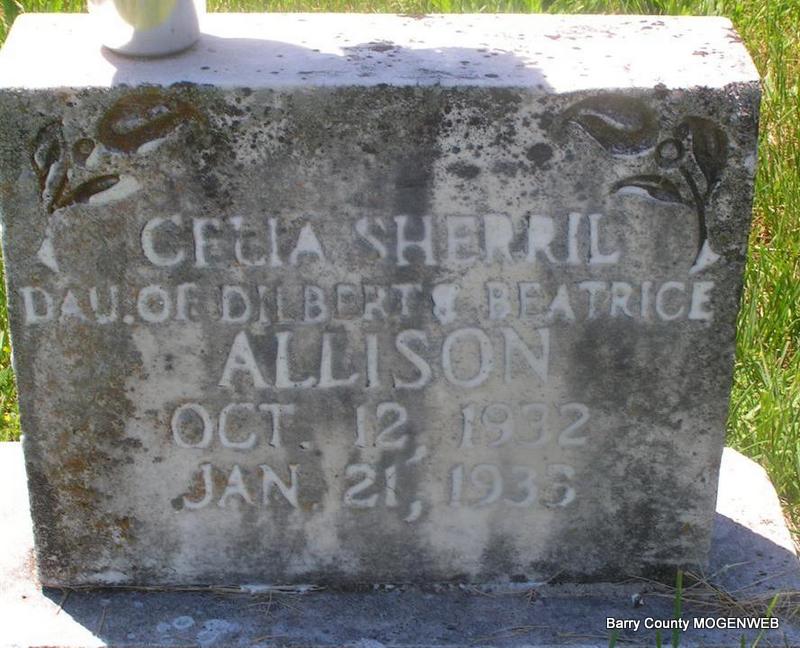 | ALLISON, Celia Sherril | Oct. 12, 1932 Barry Co., MO |