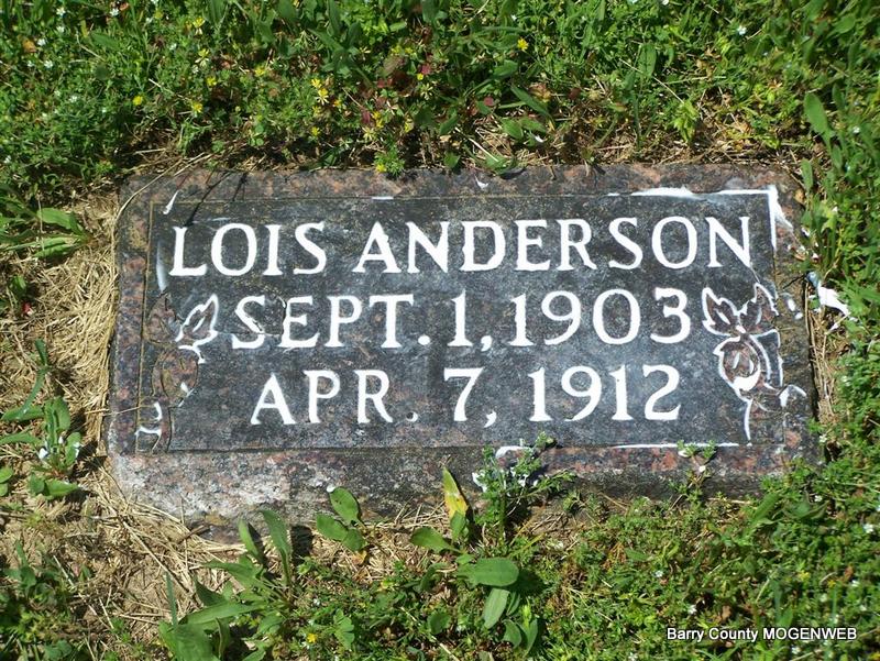 | ANDERSON, Lois Agnes | Sept. 1, 1903 McDonald Co., MO |