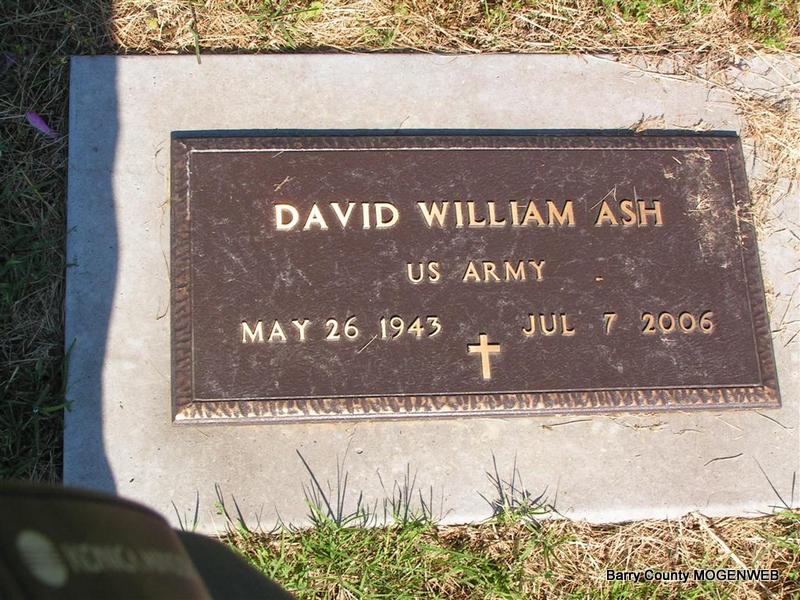 | ASH, David William | May 26, 1943 Cassville, Barry Co., MO |