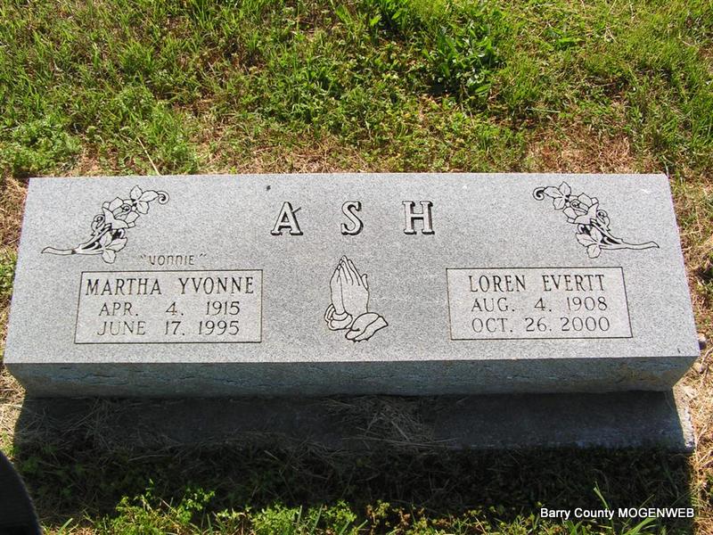 | ASH, Loren Evertt | Aug. 4, 1908 Stone Co., MO |