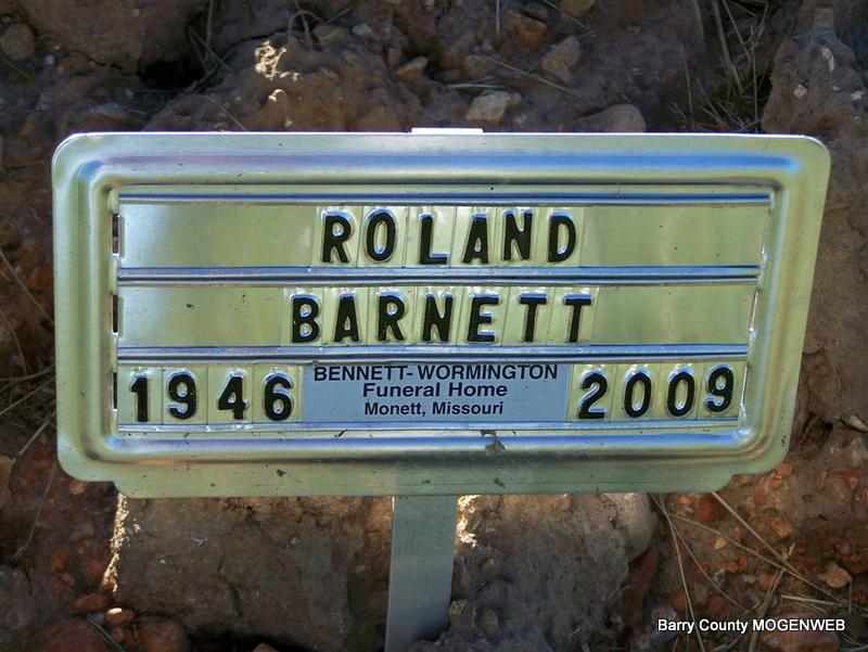 Research Note: Temp. Marker - He was a son of Thomas and Gladys (McNeil) Barnett. Roland was a retired worker for the City of Monett. Survived by one brother and one sister. | Advertiser May 6, 2009 Phyllis Long Photo Don Warner - Deceased |