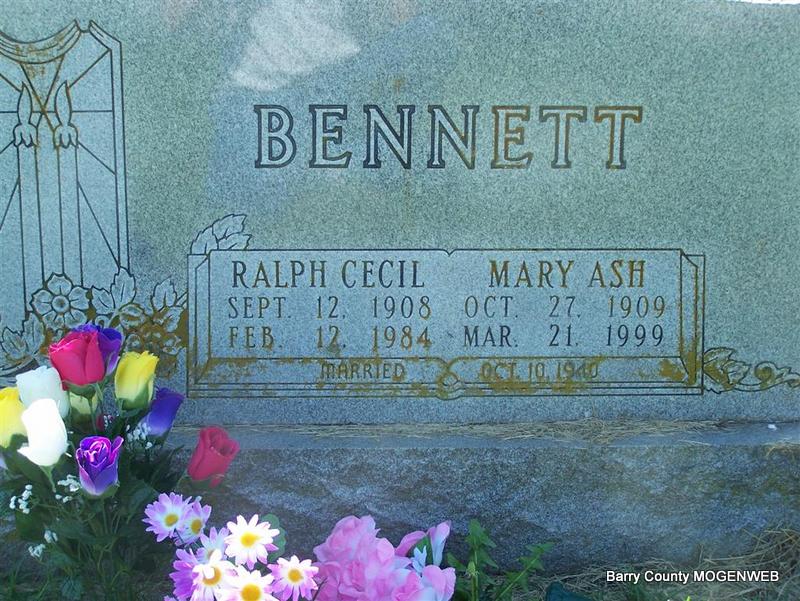 | BENNETT, Mary Luthia (ASH) | Oct. 27, 1909 Stone Co., MO |