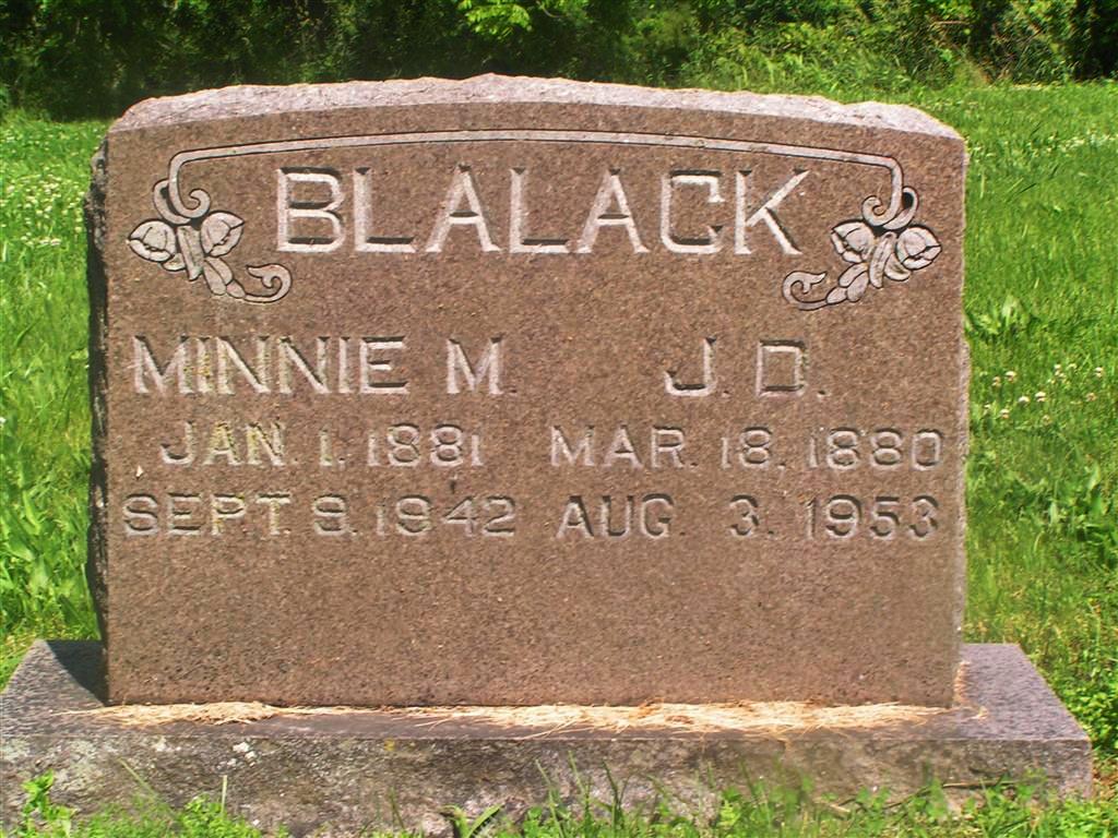 SSW: John David - Research Note: Her death certificate reads that Thomas Monroe Jackson was her father's name and Lucinda "Lucy" Oaks, was her mother. Both were born in Barry Co., MO. John D. Blalack was her husband's name. She had lived in the community 61 years. W. C. Koon, Cassville, MO, was the informant. - August 24, 1899, Cassville Republican - Licensed to Wed: John Blalack, 19, Butterfield and Minnie M. Jackson, 18, McDowell. | Photo Don Warner - Deceased Death Certificate Donna Cooper Online Newspapers Phyllis Long |