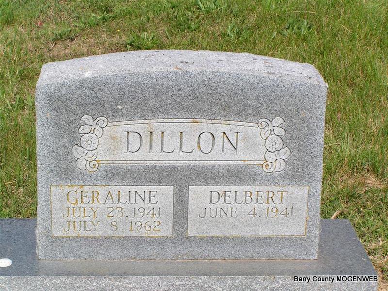 SSW: Geraline - Research Note: NOT BURIED HERE - The Fulton Sun: Reverend Delbert Dale Dillon, 65, of Centralia, died Wednesday, February 7, 2007, at Heritage Hall in Centralia. He was born June 4, 1941, in Fulton, to the late Lester Leon and Edna Fern (Powers) Dillon. On November 20, 1964, he married Kathy A. (Jones) Dillon. Survivors include a daughter, Deborah Colley of Clark, four sons, Bud Dillon of Rockville, Glen Dillon of Phoenix, Arizona, Stephen Dillon of St. Charles and Steve Jones of Kansas City, two sisters, Joyce Beckham and Joann Tolmachoff, a brother, Wallace Dillon and fourteen grandchildren. He was also preceded in death by his first wife, a grandchild and a brother. Mr. Dillon was a retired minister for Church of God Holiness. Services are at 1:00 pm Saturday at the Fulton Church of God Holiness with Reverend James Coleman officiating. Interment will be held in Reform Cemetery. Visitation is from 6-9 pm today at the Maupin Funeral home. Memorials are suggested to the Mexico Church of God Holiness Building Fund. | Photo Don Warner - Deceased Obit Phyllis Long |