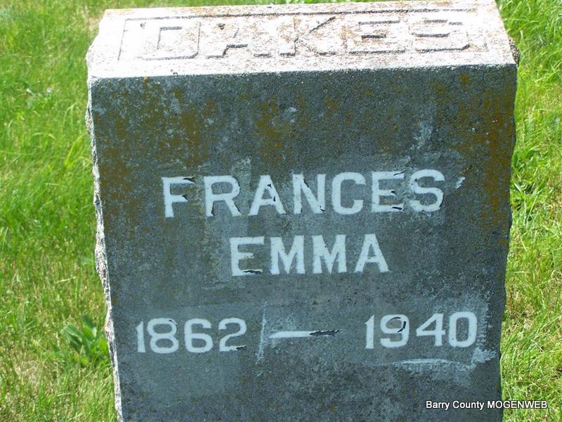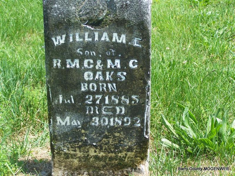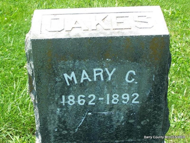 Research Note: First wife of Rama Mack Carver Oakes. Rama M. C. Oakes married Mary Catherine Dempsey on Apr. 13, 1876 in Barry Co., MO. Researchers say she was the daughter of James Dempsey and Melia Ann Culbertson. | Photo Don Warner - Deceased MO Marriage Records Phyllis Long |