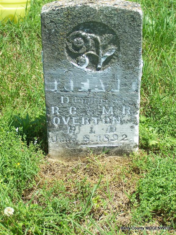 | OVERTON, Infant | June 8, 1892 | June 8, 1892 | Inscription: "Infant - Daughter of R. C. and M. R. Overton - B. and D. June 8, 1892" | Photo Don Warner - Deceased |