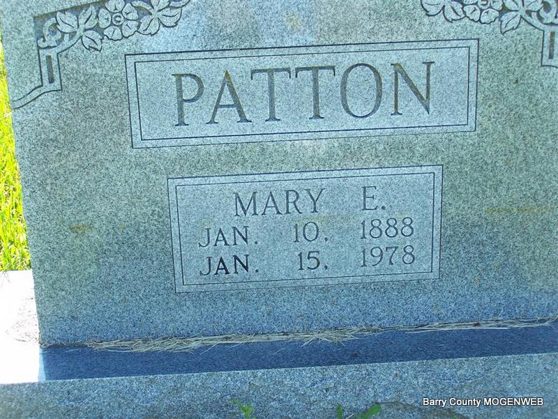 | PATTON, Mary Elizabeth (MITCHELL) | Jan. 10, 1888 Flat Creek, Barry Co., MO |