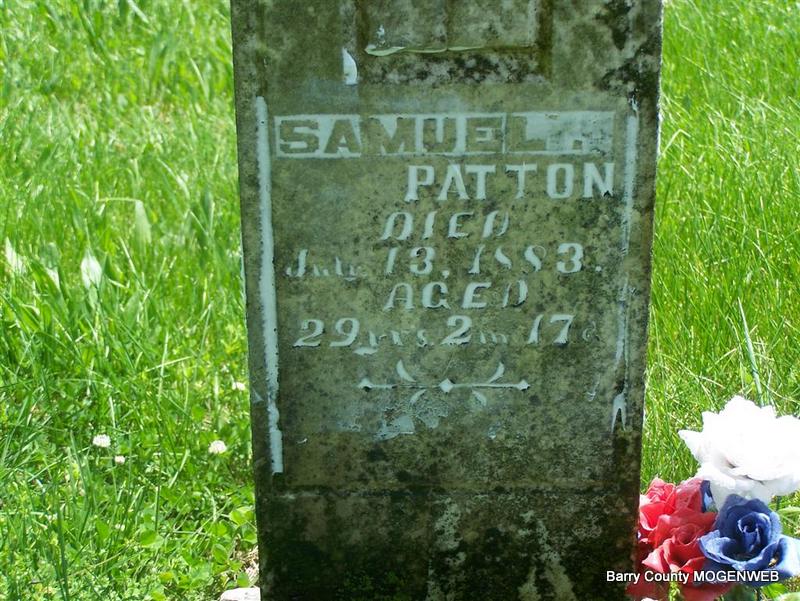 July 13, 1883 | Inscription: "Aged 29 Yrs. 2 m. 17 d." - Research Note: Son of Zadoc Casey Patton and Eleander Jane Lowry. | Photo Don Warner - Deceased Census Phyllis Long |