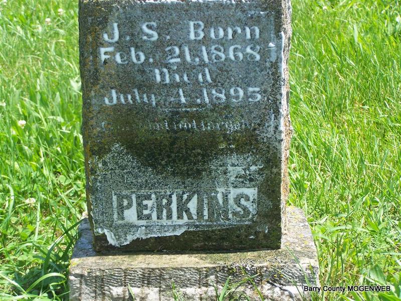 SSW: Florence - Research Note: His death certificate has that he was born in 1878 and not 1876 as the stone reads. His father is given as John K. Perkins and his mother as Martha Netherton. The cause of death was coronary embolus, heart disease. He was a farmer and married. Florence Perkins was given as his wife's name. Florence Perkins, Cassville, MO, was the informant. | Photo Don Warner - Deceased Death Certificate Donna Cooper |