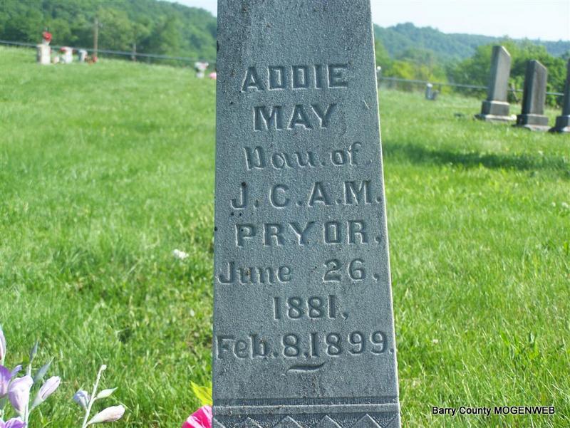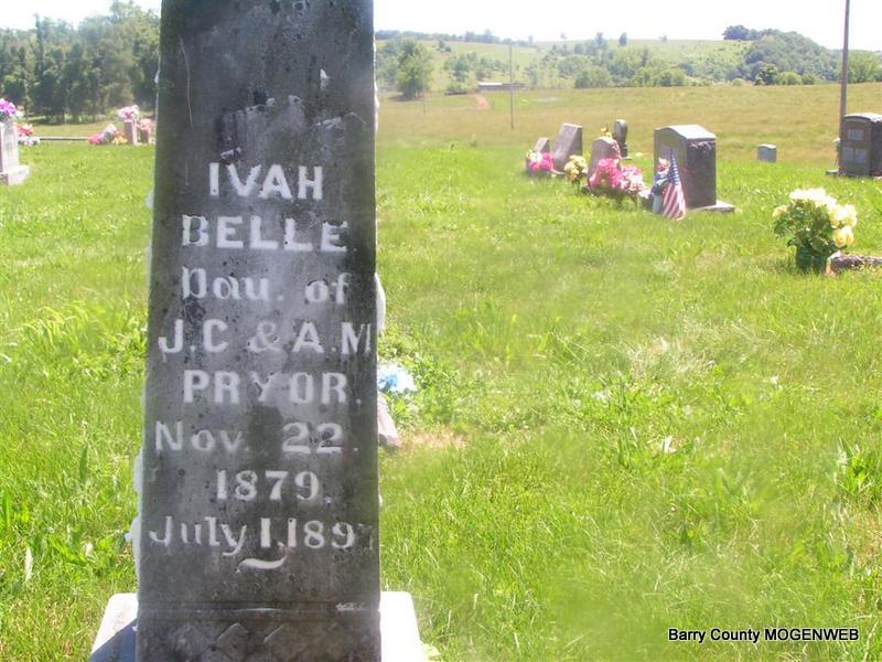 Research Note: His wife was America Cox. Place of birth and parents not known on the death certificate. He was married. Will Pryor of Purdy, MO was the informant on the death certificate. Researchers say he was the son of William Jonathan Pryor and Serilda Wright. - May 6, 1915, Thursday, Cassville Republican - Dog Hollow News: J. C. Prior lost a good milk cow last week from some kind of poisoning. | Photo Don Warner - Deceased Death Certificate Online Newspapers Phyllis Long |