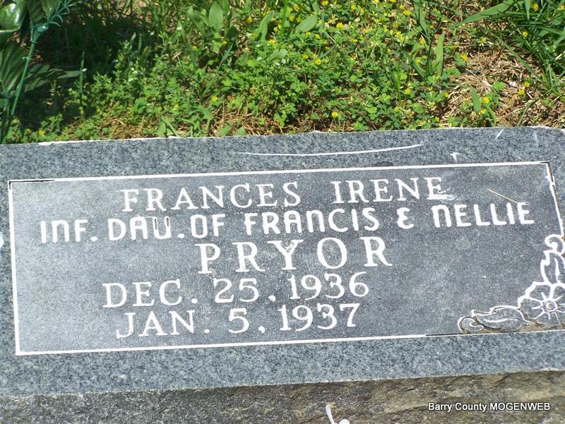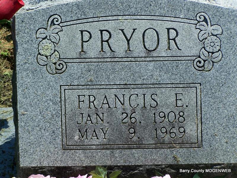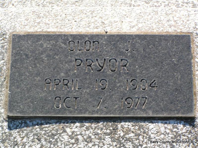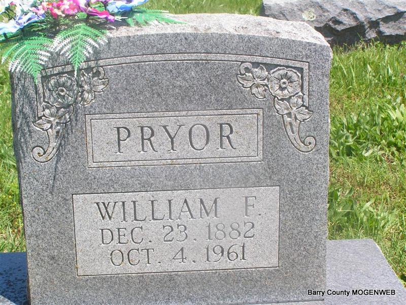 Research Note: Son of James C. Pryor and America Cox. Loella Koch was his wife. Georgia Ford of Cassville, MO was the informant on the death certificate. - Cassville Republican, Thursday, August 1, 1918 - W. F. Pryor bought B. R. Byrd's crop, also house furnishings and farming implements. Mr. Byrd will go to Kentucky to live as soon as his farm is sold. | Photo Don Warner - Deceased Death Certificate Online Newspapers Phyllis Long |