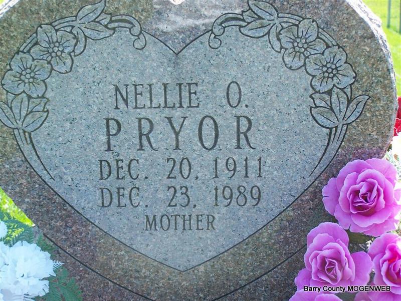 | PRYOR, Nellie Opal (GATES) | Dec. 20, 1911 | Dec. 23, 1989 | Inscription: "Mother" - Research Note: Daughter of John H. Gates and Dora Long. Wife of Frances E. Pryor. | Photo Don Warner - Deceased Census Phyllis Long |