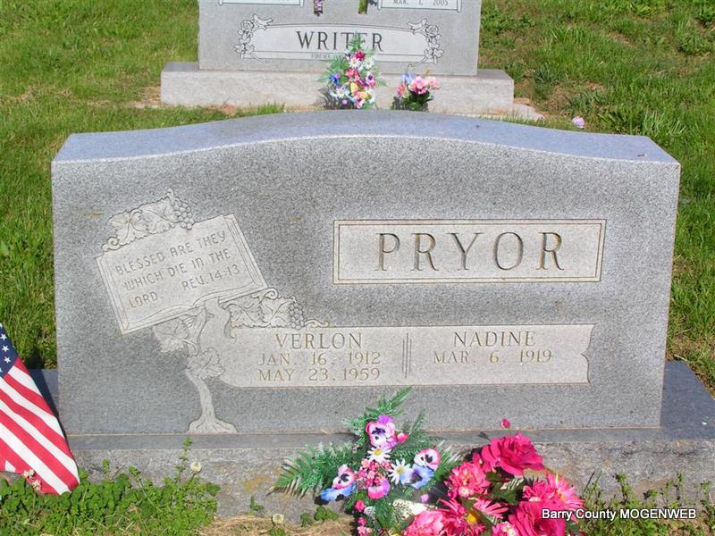 | PRYOR, Verlon Jewel | Jan. 16, 1912 Cassville, Barry Co., MO |