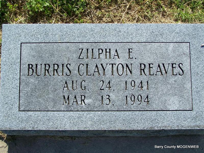 | REAVES, Zilpha E. (BURRIS) (CLAYTON) | Aug. 24, 1941 | Mar. 13, 1994 | Research Note: Daughter of Andrew Isaac Newton Burris and Augusta Mae Winchester, buried at Sparks Cemetery. | Photo Don Warner - Deceased Note Phyllis Long |
