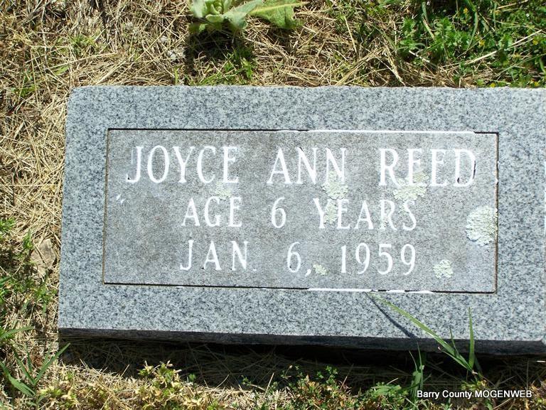 | REED, Joyce Ann | Abt. 1953 | Jan. 6, 1959 | Inscription: "Age 6 years" | Photo Don Warner - Deceased |